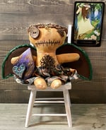 NOT INTENDED FOR CHILDREN! She has buttons and small parts that could easily be eaten. She is intended for decoration only. She will NOT stand up to rough play and can’t be machine washed.