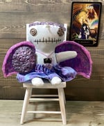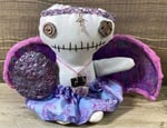 NOT INTENDED FOR CHILDREN! She has buttons and small parts that could easily be eaten. She is intended for decoration only. She will NOT stand up to rough play and can’t be machine washed.