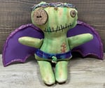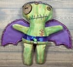 NOT INTENDED FOR CHILDREN! He has buttons and small parts that could easily be eaten. He is intended for decoration only. He will NOT stand up to rough play and can’t be machine washed.