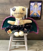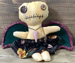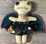 NOT INTENDED FOR CHILDREN! She has buttons and small parts that could easily be eaten. She is intended for decoration only. She will NOT stand up to rough play and can’t be machine washed.