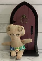 NOT INTENDED FOR CHILDREN! He has buttons and small parts that could easily be eaten. He is intended for decoration only. He will NOT stand up to rough play and can’t be machine washed.