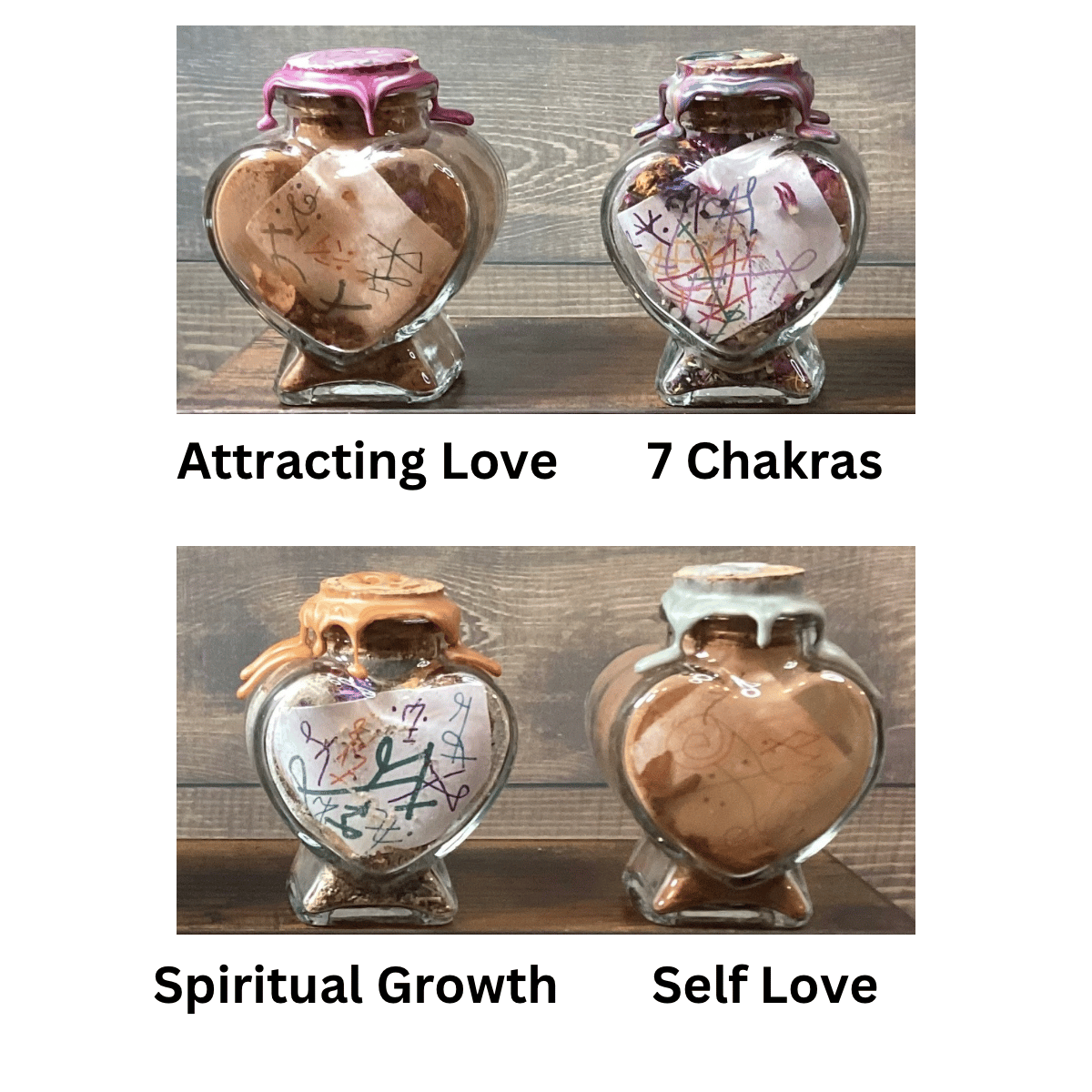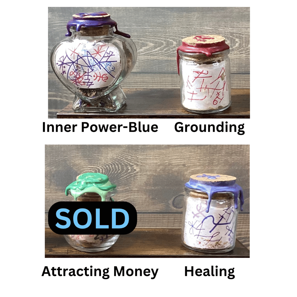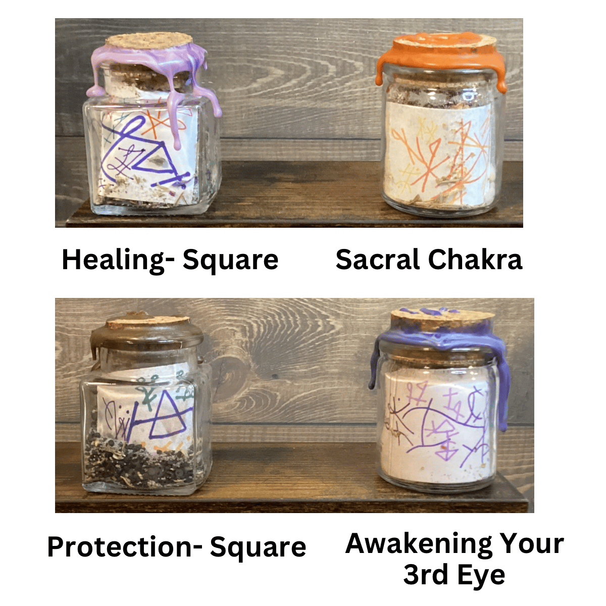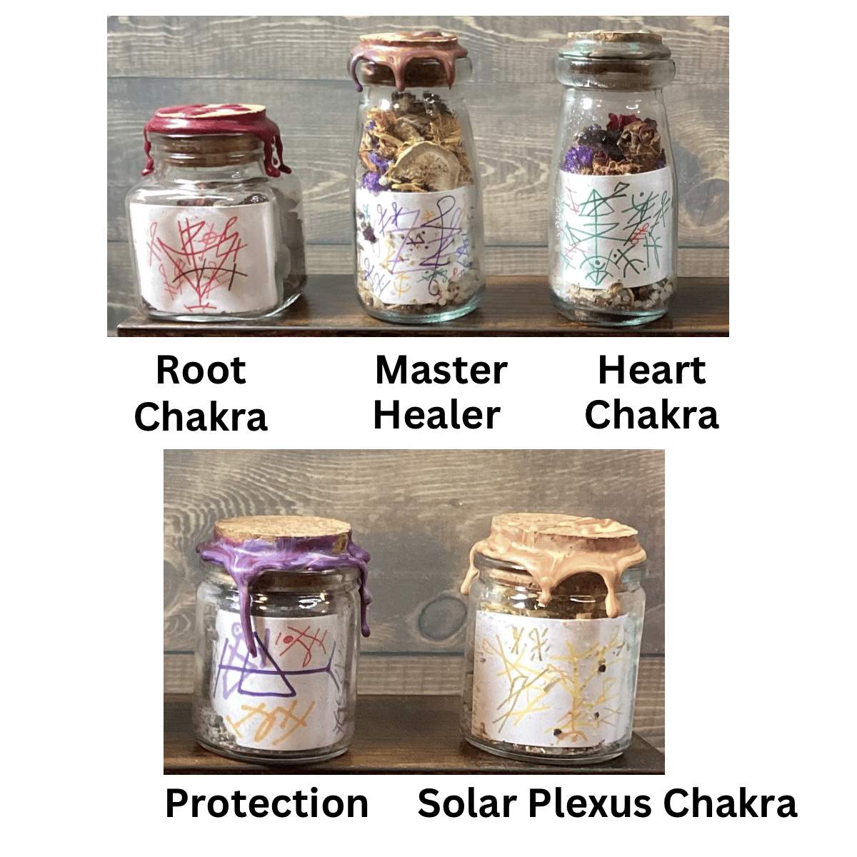 Each Ancient Manifestation Jar (AMJ) has been cleansed with paleo wood before ingredients are added. Each AMJ has a unique combination of natural flowers, herbs, and spices with a channeled Intention Light Code written down just for you. A cork stopper and a wax seal closes the Jar. Each Jar makes possible Personal Transformation and Spiritual Awakening.