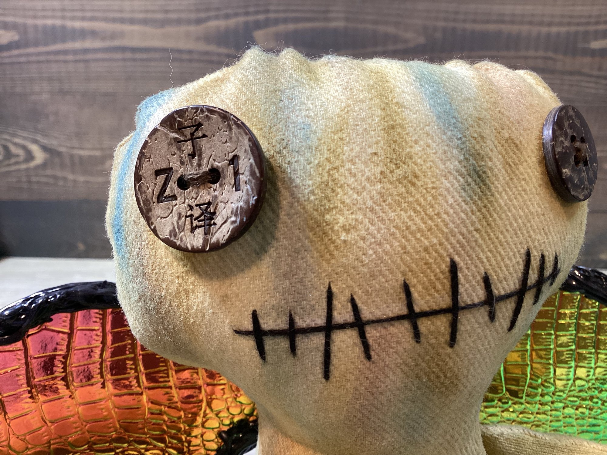 NOT INTENDED FOR CHILDREN! He has buttons and small parts that could easily be eaten. He is intended for decoration only. He will NOT stand up to rough play and can’t be machine washed.