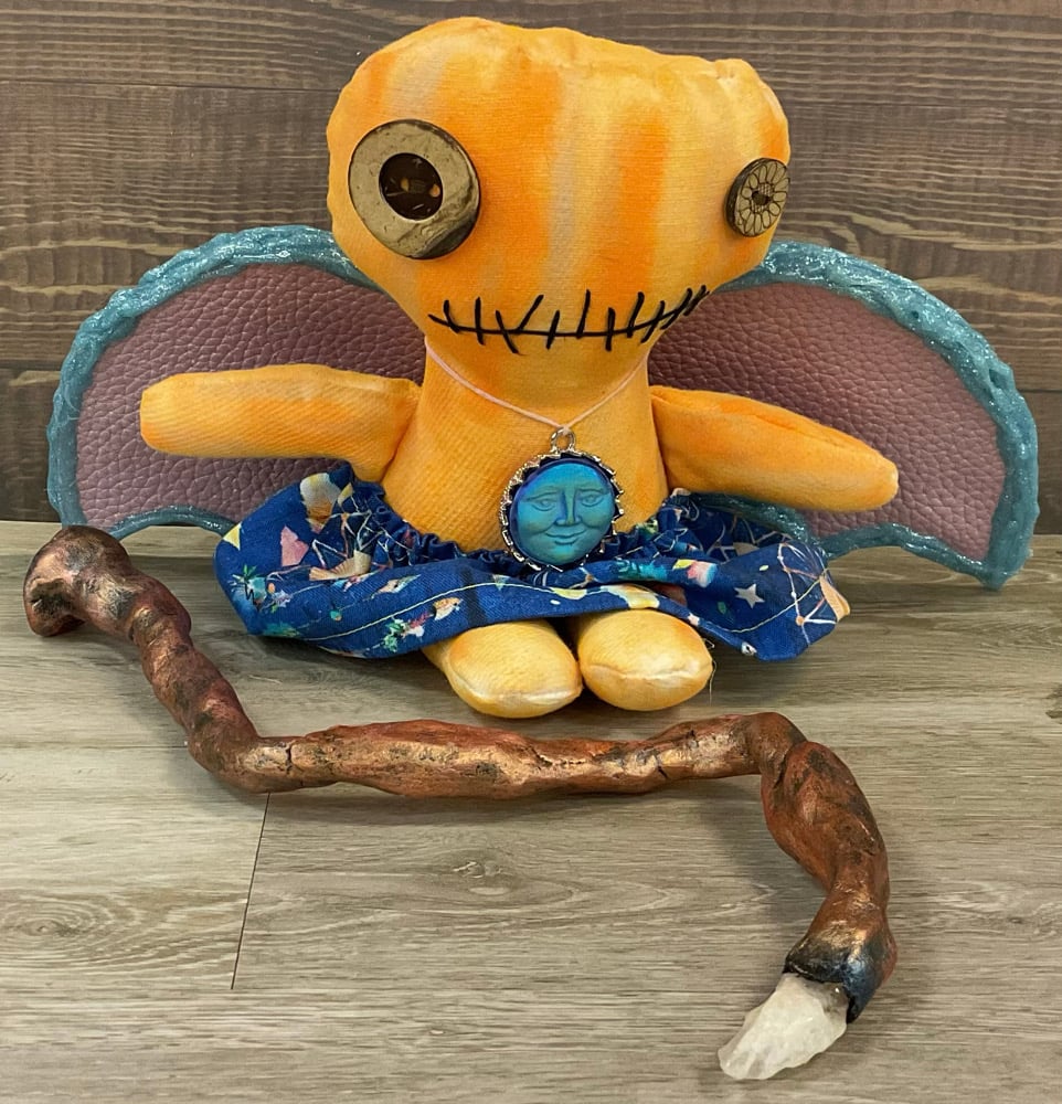 Her wand is handmade using air drying clay and is hand painted. The wand is her gift to you, to help you on your journey. The stone on the top of the wand is a Citrine Stone. The stone has been saged and has intentions in it to help you on your spiritual journey.